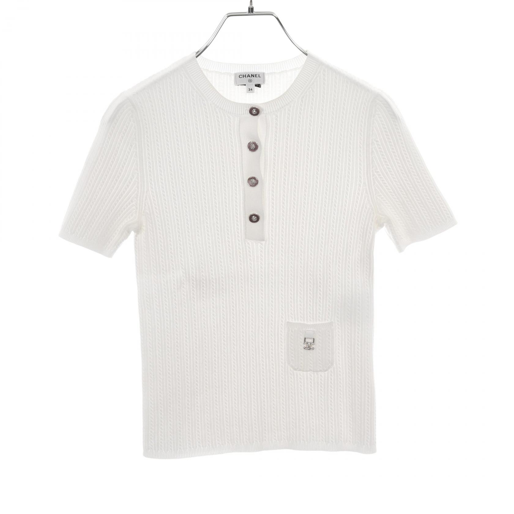 ≪5%OFF&まとめ買い対象≫シャネル CHANEL ココマーク リブサマー ニット 衣料品 トップス コットン レディース ホワイト系 P72484K10390 【中古】