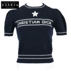 正規 Christian Dior クリスチャンディオール 224S09AM308 ロゴ入り カシミヤxウール 半袖ニットセーター I:38 レディース