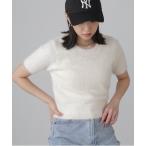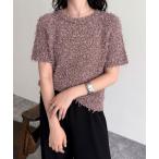 ニット セーター フェザーヤーン半袖プルオーバー レディース