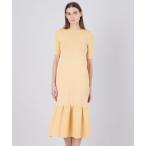ワンピース メタルライクヤーンニット ペプラムヘムドレス