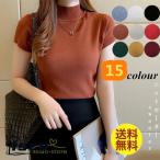 リブニット レディース 半袖 tシャツ カットソー トップス ストレッチ 柔らか 無地 サマーニット 黒 白 ベージュ 緑 可愛い ニット 着痩せ 赤 ハイネック