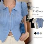 リブニット 半袖 レディース Vネック サマーリブニット レディース トップス サマーニット カラーニット 半袖ニット ベーシック リブニット Tシャツ y5