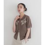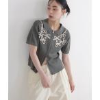 ニット セーター ダブルカラー胸刺繍半袖ポロニット レディース