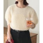 ニット セーター ツイーディーフェザーボリュームスリーブ半袖ニット レディース