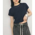 ニット セーター ワイドリブニット半袖コンパクトトップス レディース