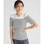 【SALE/21%OFF】RETRO GIRL スカシボーダー半袖NT レトロガール トップス ニット ブラウン ホワイト