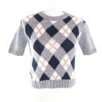 極美品★PRADA プラダ P24T2P カシミヤ100% ロゴ刺繍入り アーガイル 半袖ニット グレー 36 イタリア製 正規品 レディース 定価319000円