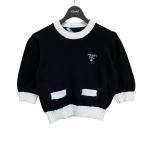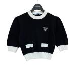 PRADA プラダ ニット P24I1R 1ZO5 レディース セーター コットン クロップド丈 リブ 半袖 刺繍ロゴ クルーネック F0967/NERO+BIANCO