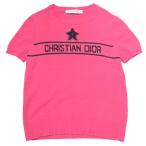 【返品可】Dior ディオール ロゴ 半袖 ニット 38 ピンク×黒 カットソー トップス Tシャツ ブランド アパレル