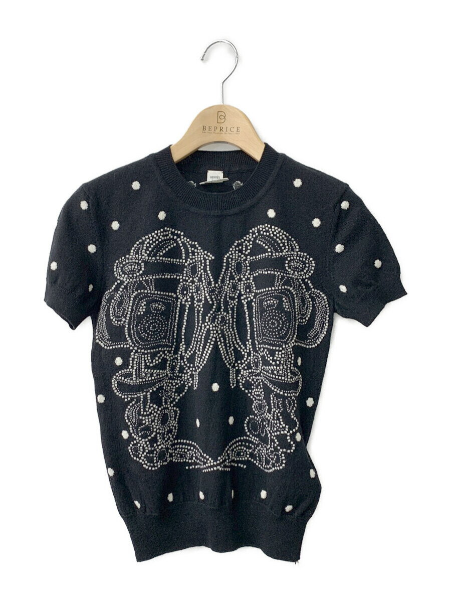 シャネル CHANEL ココマーク 半袖カットソー ニット ラインストーン トップス ニット ブラック レディース 中古