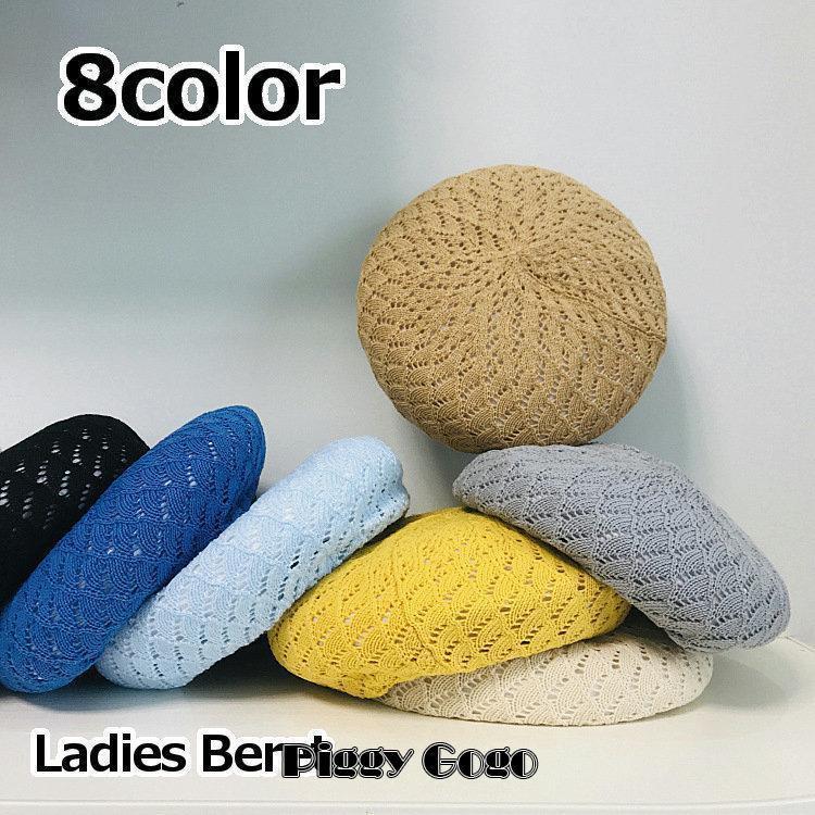 送料無料 ベレー帽 かぎ針編みニット レディース 女性 婦人 かぎ編み 透かし柄 お洒落 可愛い シンプル フェミニン お出かけ 普段使い デイリー ファッション小物 春 夏 秋