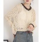 ニット セーター acrylic mohair low gauge knit / 透かし柄編みアクリルモヘアニット レディース
