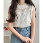 ニット セーター 「洗える/S-LL/2点セット」透かし柄ベスト+ブラウス レディース