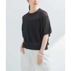 Tシャツ レディース 春夏新作 40代 半袖 ニットトップス 透かし彫り配色ボーダー柄Tシャツ レション ショット丈ニットソー ゆったりカットソー おしゃれ 大人
