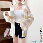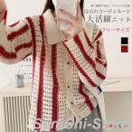 ニット ゆるメッシュ ニットカーディガン 透かし編み プルオーバー レディース インナー トップス ゆったり 長袖 ボーダー柄 おしゃれ 通気