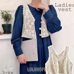 ベスト トップス 透かし編み かぎ編み ジレ 前開き Vネック 春 夏 ショート丈 レディース 女性 袖なし カジュアル 無地 ニットベスト カジュア