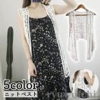 ニットベスト 透かし編み レディース 女性用 トップス 春 夏 無地 ノースリーブ 羽織り かぎ針編み レース 前開き ボタンなし 体型カバー 前後丈