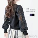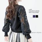 ニット レースボリューム袖 プルオーバー レディース トップス セーター 透かしレース 丸首 長袖 おしゃれ きれいめ 大人女子