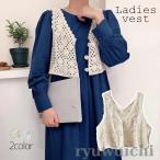 ベスト トップス 透かし編み かぎ編み ジレ 前開き Vネック 春 夏 ショート丈 レディース 女性 袖なし カジュアル 無地 ニットベスト カジュア