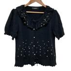 美品 24SS PINK HOUSE ピンクハウス パール使い透かし柄ニットカーディガン A2141KCD518 ブラック レディース 古着 中古