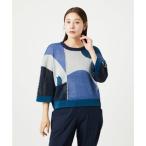 【SALE/40%OFF】NEWYORKER WOMEN L-SIZE 【L】TCホールガーメント(R) 求心透かし柄5分袖プルオーバー ニューヨーカー エルサイズ トップス ニット ネイビー ホワイト【送料無料】