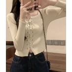 ニット セーター ニットトップス フロントレースアップ秋服 レディース
