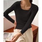 ニット セーター スクエアネックリブショート丈ニットトップス レディース