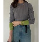 ニット セーター 異素材レイヤードニットプルオーバー レディース