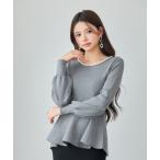 ニット セーター パール付きニットペプラムプルオーバー レディース