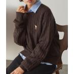 ニット セーター U.S. POLO ASSN. /ユーエスポロアッスン 別注ワンポイント刺繍 ケーブルニットプルオーバー レディース メンズ