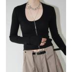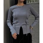 ニット セーター 「&g'aime 」 レースアップリブニット lace-up ribbed knit top レディース