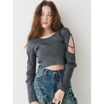 ニット セーター オープンアームラメチャームニットトップス レディース
