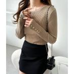 ニット セーター 袖ケーブル編みニットプルオーバー レディース