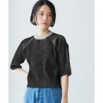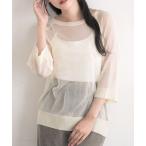 tシャツ 袖 切り替え シアー ニットソー 異素材 レディース