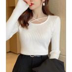 ニット セーター 「2024SS」ボウタイ付きリブニット レディース
