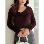 ニット セーター ミニシャギーVネッククロップドニット レディース