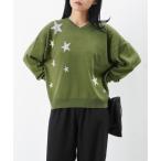 ニット セーター Vネック ジャガードロゴニット/ スウェットライクニット レディース