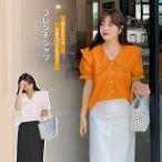 ラージサイズ レディース フレンチ レトロシャツ サマー ニュースタイル プラスファット ルーズ 半袖トップ オレンジ ホワイト