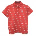 ニューバランスゴルフ 半袖ポロシャツ レッド×白 総柄 シューズワッペン ボタンダウン レディース 1(M) ゴルフウェア New Balance
