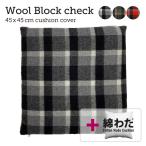 クッションカバー 中身付き 45×45 座布団カバー 45角 ウールブロックチェック&綿わた100%座布団中身 日本製 fabrizm 冬 椅子用 シートクッション タイムセール