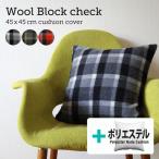 クッションカバー 中身付き 45×45 北欧 45角 ウールブロックチェック&ポリエステルわたヌードクッション 日本製 fabrizm 冬 背当てカバー タイムセール