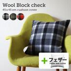 クッションカバー 中身付き 45×45 北欧 45角 ウールブロックチェック&アップサイクルフェザーヌードクッション 日本製 fabrizm 冬 背当てカバー タイムセール