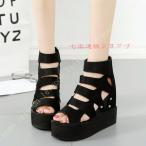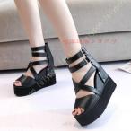 サンダル レディース グラディエーター ウェッジソール 11cmヒール バックジッパー 厚底 ウエッジソール ワイズ 夏 女性 おしゃれ 歩きやすい ブーツサンダル