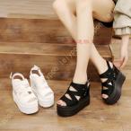 厚底サンダル レディース オープントゥ バッグジッパー ウェッジ 12cmハイヒール 夏 5cm防水台 歩きやすい 黒 厚底サンダル ビーチサンダル 夏 ウェッジソール