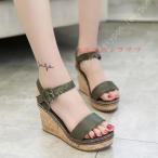 サンダル レディース ウェッジソール 8cmヒール ストラップサンダル コルク クッション入り スウェード 歩きやすい 22.5cm-25.0cm 黒 ブラック グリーン 緑