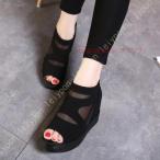 ブーツサンダル サマーブーツ オシャレサンダル オープントゥ メッシュ サンダル ウェッジソールサンダル レディース ヒール 9.5cm 美脚 ファスナー 夏ブーツ