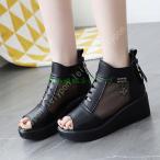 ブーツサンダル サマーブーツ オシャレサンダル オープントゥ メッシュ サンダル ウェッジソールサンダル レディース ヒール 6cm 美脚 ファスナー 夏ブーツ