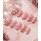 ネイルチップ ネイルシール 3D水光ネイルベージュマグネット3Dリボンアートバレリーナネイルチップ マグネットネイル