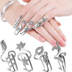 1セット/ 4個ラインストーン指爪薬指先端調節可能なオープニングネイルアートチャームアクセサリー女性女の子、シルバー
