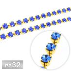 ラインストーン チェーン PP32 1m サファイヤ ゴールドカラー 連爪 デコ ネイル 手芸 パーツ